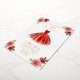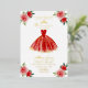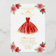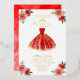 Elegante vestido rojo, floridas invitaciones para la fiesta de cumpleaños 15.