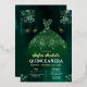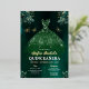 Invitación Con Relieve Metalizado Vestido verde esmeralda floral Cumpleaños Quincean