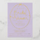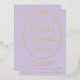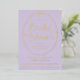 Relieve metalizado de invitación a la ducha de novias Bow Lilac y Gold con letras modernas.
