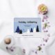A card with blue winter skies and a forest of stylized trees. This cute design shows various shades of blue across the canvas as well as trees. The foil adds the final touch of sparkle (silver works well!) to the winter scene. Look for the matching envelope to complete your Christmas correspondence!