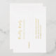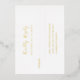 A classic white background. Personalize and add the reply by date and your names. Real gold foil text on the front.