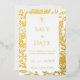 A classic white background. Decorated with gold foil botanical foliage. Personalize and add your monogram initials and the Save the Date details. Real gold foil text on the front.