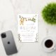 Adorables invitaciones a una ducha de bebé con temática de safari con un ambiente dulce de boho cuentan con un tendedero de cuerda con un enterizo acuarela, pantalones cortos, zapatos y un rattle de león adornado con hojas de selva tropical. "Nuestro Pequeño Salvaje está en camino" aparece debajo de la escritura manuscrita de Relieve metalizado gris y dorado y letras clásicas de serif. Personalice los detalles de la ducha de bebé debajo.