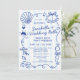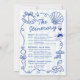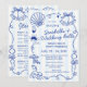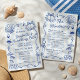 Celebra a la futura novia con esta chic e ingeniosa invitación de Despedida de Soltera en Playa Azul Costera. Con un tema trendy de "Conchas marinas y campanas de boda", esta tarjeta de doble cara sirve como invitación y como itinerario detallado del fin de semana. El diseño cuenta con ilustraciones caprichosas dibujadas a mano, incluyendo conchas marinas, campanas de boda y olas del océano, sobre un fondo atemporal de rayas azules claras y blancas de cabana. Perfecta para un fin de semana en un destino en Florida, los Hamptons o un resort tropical, el texto del modelo es totalmente personalizable utilizando la herramienta de diseño de Zazzle. Actualice fácilmente el nombre, las fechas, la ubicación y el calendario de eventos para ajustarlos a sus planes específicos de "Despedida de soltera en la playa". Perfectamente adecuada para fines de semana de despedida de soltera en la playa, fiestas de novia náuticas o eventos de bodas en destino, este diseño captura sin esfuerzo el anhelado estilo 'Abuela Costera' y el estilo 'Club de playa pre