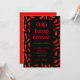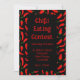 Invitación al concurso de comida para niños de Guay. Los chiles rojos brillantes con motivos en un fondo negro, con una sección editable para introducir sus propios detalles. Personaliza esta divertida invitación a usar en eventos de chile, en eventos de comida picante o para invitaciones de cumpleaños con un tema caliente y picante.