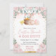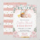 Elegante acuarela Primavera Conejo de Pascua y diseño de flores rosadas con confeti purpurina de oro con fondo de rayas moradas