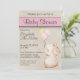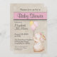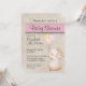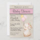 Invite a todos a celebrar a la nueva futura madre en una ducha de bebé con este hermoso diseño de invitación que incluye un conejo vintage con globos en un fondo beige neutro. Acentos rosas y amarillos.