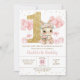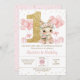 Personalice esta encantadora invitación a la fiesta de cumpleaños 1er conejo dulce con su propia redacción fácil y rápidamente. Simplemente haga clic en el botón Editar usando herramientas de diseño para editar el texto, la redacción, el estilo de fuente, el tamaño de fuente, el color de fuente, agregar más texto, mover o eliminar algunas imágenes. Con un adorable conejo conejo de bailarina sosteniendo un ramo de flores al lado de un falso purpurina de oro número uno, globos rosados festivos y un bonito fondo de confeti. Elementos coincidentes disponibles en el almacén. c) Somerset Fine Paperie.