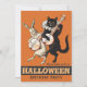 Invitación de cumpleaños de Halloween inspirada en la foto de portada de marzo de 1896 de la revista literaria estadounidense The black cat. La imagen muestra un gato negro y un conejo, ambos jugando banjos. Los dos trovadores de animales se ven felices, pero también un poco asquerosos, no se puede decir lo que están haciendo. Parecen estar de buen humor para Halloween. Personalice la invitación de cumpleaños de Halloween simplemente escribiendo sobre los textos de ejemplo. Para obtener más personalización, haga clic en el botón Personalizar y utilice el editor de diseño.