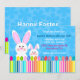 © Socialite Designs. ¿Tener una reunión de Pascua? Este divertido diseño de conejos de Pascua es perfecto si te gusta lo lindo y lo colorido. Nuestro diseño incorpora dos conejillos, huevos de Pascua coloridos y un fondo floral azul.