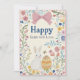 Celebra Pascua con amor enviando esta adorable y encantadora tarjeta de invitación! Con un diseño delicioso con un bonito conejito, un huevo de Pascua decorado y acentos florales, esta tarjeta es perfecta para invitar a amigos y familiares a su celebración de Pascua. Las palabras "Feliz Pascua con Amor" están bellamente escritas en la tarjeta, agregando un toque personal a tus invitaciones.