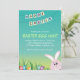 Esta colorida invitación a la caza de huevos de Pascua incluye un conejo rosa de Pascua, huevos de colores en la hierba y un cartel con el texto: Feliz Pascua. El texto del personalizable le permite agregar la información del evento. El fondo es azul verde azulado y la pancarta está decorada con varios colores pastel.