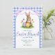 Invitación de Pascua de Conejo Floral Azul y Rosa Cinta de Cuadros