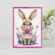 Invitación Conejo lindo con cumpleaños de arco rosa
