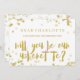 ¿Serás nuestra tarjeta de azafata en oro y blanco, con confeti de oro falso y una fuente tipográfica audaz y manuscrita encantadora.