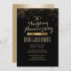 Invitaciones de aniversario de boda negras con puntos de confeti dorados chic.