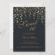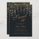 Invitación confeti de purpurina dorada en dulces dieciséis ne