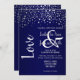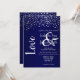 Invitación a la boda. Con una moderna invitación de estilo boda en un oscuro fondo azul marino con puntos de confeti plateados y la palabra amor en negrita. ⭐ Este Producto es 100% Personalizable. Gráficos y/o texto se pueden agregar, borrar, mover, cambiar de tamaño, girar, etc... 99% de mis diseños en mi tienda se hacen en capas. Esto facilita el redimensionar y mover los gráficos y el texto para que encajen perfectamente en cada producto. 📌 (Asegúrese de cambiar el tamaño, cambiar, añadir, eliminar o mover cualquier gráfico o texto si fuera necesario antes de realizar el pedido) También puede "TRANSFER DESIGN" en otros productos de Zazzle y ajustar el diseño para que se ajuste a la mayoría de los elementos de Zazzle. (haga clic en el área de transferencia de abajo) Algunos de los gráficos de texto están listos para rellenar los cuadros o puede hacer clic en el botón "PERSONALIZAR" para agregar, mover, borrar, cambiar el tamaño, el color de fondo o cambiar cualquiera de los tipos de letra o gráficos. El diseño se realiza con vectores de alta resolución y/o gráficos digitales para una impresión profesional. NOTA 📌: (ESTA ES UNA IMPRESIÓN. Todos los diseños de los productos de Zazzle son "impresiones" a menos que se indique lo contrario en "Acerca de este producto") El diseño se imprimirá EXACTAMENTE como lo ves en la pantalla y en el producto...por lo tanto, asegúrese de que cuando realice sus cambios en el redimensionamiento de cualquiera de los gráficos o textos que encaja correctamente en las áreas y que su ortografía y su redacción sean como le gusta que sea en tamaño, color y fuente. Si tienes alguna pregunta sobre el "DISEÑO ÚNICAMENTE" o necesitas ayuda, por favor contacta conmigo a través del enlace de mi tienda: https://www.zazzle.com/store/LetsUDesignIt (Copiar y Pegar) Estaré encantado de ayudar. ⭐ TODAS LAS DEMÁS PREGUNTAS COMO (envío, reembolso, impresión incorrecta, el producto en sí, etc...) por favor contacte con Zazzle o el Maker ⭐ DIRECTAMENTE ⭐. Gracias por el apoyo y por parar en mi tienda - LetsUDesignIt. ⭐ ⭐ ⭐ ZAZZLE promete 100% de satisfacción.