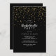 Este confetti dorado | la invitación a la soltera negra es perfecta para un evento sencillo y elegante. El elegante y caprichoso diseño presenta un confetti purpurina de oro falso y caligrafía minimalista sobre negro con un toque boho moderno.