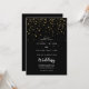 Invitación confetti de efecto metalizado dorado | Frente negr