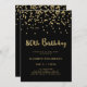 Esta brillante y elegante invitación a la fiesta de cumpleaños número 80 presenta confetti de oro falso y tipografía a juego en un fondo negro.
