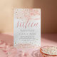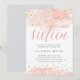 Moda dulce dieciséis invitaciones en color rosa y gris oscuro presentan lavados de color rosa rubor en la parte superior e inferior con falso purpurina de oro y "dieciséis" en letras caligráficas color agua rosa. Personaliza con tus dulces detalles de tu fiesta de 16 cumpleaños bajo un elegante gris.
