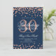 Elegante plantilla de invitación del Purpurina Rosa Gold Faux Confetti Navy Blue. ¡Genial para fiestas de 30 años y más!