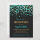 Invitación de cumpleaños Confetti, Purpurina negro de oro Verde azulado moderno. Puede personalizar la edad, el nombre y los detalles de cumpleaños.