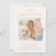 Invitar a amigos y familiares a una celebración especial con esta encantadora invitación de cumpleaños de Peter Rabbit. Este diseño de estilo Peter Rabbit, con un bonito estilo acuático, está rodeado de alegres puntos de confeti rosa, melocotón y dorado que le dan un toque festivo y caprichoso. Un cartel rosa dulce resalta el nombre del chica de cumpleaños, mientras que la foto de personalizable y los detalles del fiesta lo hacen único tuyo. Perfecto para los cumpleaños de primavera, los fiestas del jardín o cualquier evento inspirado en Beatrix Potter, esta invitación combina el encanto clásico de los cuentos con detalles modernos y lúdicos.