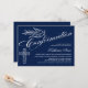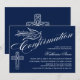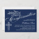 © Socialite Designs. Nuestra hermosa invitación de confirmación caligráfica tiene un texto de dove, cruz y hermosa caligrafía. El fondo es azul oscuro. Una encantadora invitación que es neutral en cuanto a género y puede ser usada para un niño o chica. Reemplace fácilmente nuestro texto de plantilla con el suyo propio. Todos los elementos de diseño se pueden mover, cambiar de tamaño o eliminar.