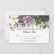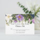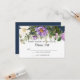 Flores antiguas de lavanda, púrpura y marfil con hojas de esmeralda verde profundo en una Tarjeta de Respuesta de Confirmación | Arte botánico vintage de flores de jardín con hojas de helecho silvestre recogidas en el bosque y follaje. El reverso tiene un fondo azul marino. Derechos de autor, Audrey Jeanne Roberts.