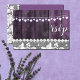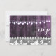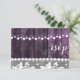 Boda rústica con madera, encaje, corazones de hilo - tarjeta de confirmación. Diseño de Alma Wad. Diseño de frente y dorso. Todos los elementos están impresos. Esta versión viene en púrpura y blanco.