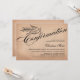© Socialite Designs. Nuestra hermosa invitación a confirmación de caligrafía tiene una paloma y cruz en la parte trasera, con un fondo de papel envejecido. Una encantadora invitación que es neutral en cuanto a género y puede ser usada para un niño o chica. Reemplace fácilmente nuestro texto de plantilla con el suyo propio. Todos los elementos de diseño se pueden mover, cambiar de tamaño o borrar pulsando el botón "personalizar".