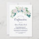Esta clásica invitación de confirmación de flores blancas es perfecta para un evento de primavera. El elegante diseño floral presenta rosales blandas de marfil y blanco, peonías y crisantemo con toques de flores de acuarela azul perwinkle y follaje verde.