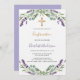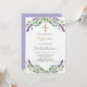 Un fondo blanco decorado con flores de lavanda y vegetación eucaliptica. Personalización y nombre y detalles. Volviendo: lavanda, fondo de color violeta.
