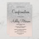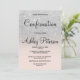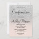 Una invitación de confirmación contemporánea, original y sencilla, en color rosa y rosa personalizable, purpurina de color falso, perfecta para confirmación