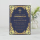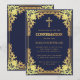 Invitación Confirmación de Niño Azul Marino Cruz Dorada Falsa