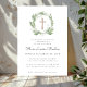 Una invitación de confirmación moderna de personalizable con un delicado lirio de diseño floral del valle alrededor de una cruz dorada ornamentada, sobre un fondo limpio con elegantes letras.