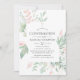 Invitación de confirmación de tonos rosa y pastel de color verde de inspiración orgánica con marco geométrico diseñado para ser rápida y fácilmente adaptado a las necesidades específicas de cada evento.