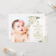 Flores blancas y marco dorado personalizado asequible imprimió la invitación de confirmación de bebé. Este diseño de bonito tiene una acuarela de flores blancas con marco dorado. Personalice el diseño con los detalles del fiesta de confirmación de su hijo. El reverso tiene una cruz dorada con flores acuáticas o usa el espacio para añadir textos y fotos adicionales. Haga clic en Personalizar para elegir cualquier color de fondo y editar los tipos de letra y colores del texto para crear una invitación única de un tipo de confirmación para su bebé
