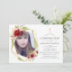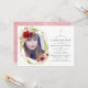 Invitación de confirmación floral geométrica de color rosa rubor y borgoña (marsala) con marco geométrico de purpurina dorada diseñada para ser personalizada rápida y fácilmente según tus especificaciones. Se recomienda una foto con forma de retrato.