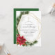 Invitación de confirmación de navidades rústicos de moda con marco geométrico dorado y tipografía de escritura a mano con campanas de trineo, flores de poinsettia, hueso, mistletoe y pino.