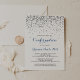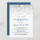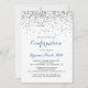 Esta minimalista invitación de confirmación de confeti plateado es perfecta para un evento religioso rústico. El diseño, sencillo y elegante, presenta confeti plateado y una sofisticada tipografía de escritura clásica en azul y negro.