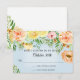 Tarjeta de respuesta de confirmación de asistencia | obra de arte de acuarela recién pintada en un estilo moderno suelto y pictórico. El fondo de color azul cielo suave resalta los colores cálidos de las flores amarillas, melocotón y rosadas frescas de un jardín botánico con hojas y follaje recogidos. Derechos de autor, Audrey Jeanne Roberts.