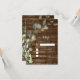 Invitaciones de confirmación de asistencia de boda de primavera con acuarela botánica de eucalipto y suculentas sobre fondo de madera rústica de campo - incluye tipografía de guión hermosa y elegante con hojas botánicas modernas y vegetación para la celebración especial del día de la boda.