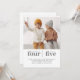 Una invitación conjunta moderna de cumpleaños que incluye su propia foto y dos secciones para el nombre y la edad de cada niño.