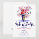 ¡Celebra tu parrillada del 4 de julio con esta invitación festiva y única! Con un delicioso cono de helado vintage adornado con fuegos artificiales vibrantes, este diseño -dibujado a mano- captura la esencia de las celebraciones de verano.