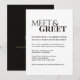 Elevar su evento de red con nuestra Invitación a eventos de reuniones de negocios de reunión y bienvenida. Con un sencillo diseño en blanco y negro con acentos dorados, esta invitación marca el tono perfecto para su próximo evento al presentar un diseño profesional sencillo, una tipografía clásica y un logotipo de personalizable en la parte posterior. Personalice con su logotipo, detalles de eventos e información de RSVP para crear una invitación memorable y sofisticada. Da una impresión duradera con este diseño atemporal.