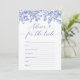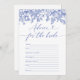 El Blue Floral Advice for the Bride Bridal Shower Game es una actividad estimulante y reflexiva. Se anima a los clientes a compartir su sabiduría, sus buenos deseos o consejos matrimoniales para los futuros novios en cartas bellamente decoradas con diseños florales azules. Es una forma encantadora de involucrar a los invitados, permitiéndoles que impartan sus palabras de sabiduría y amor y añadiendo un toque de elegancia y encanto a la celebración de la ducha de novias. Blue Floral Advance para el juego de ducha de novia algo azul victoriano Blue Bridal Shower Game