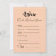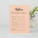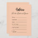 Presentando "Consejos para la novia y el novio", un juego de duchas sentidas y significativas diseñado para crear una hermosa colección de sabiduría y amor de la familia, amigos y seres queridos. A diferencia de los juegos típicos, esta cuidada actividad ofrece una plataforma segura y no conflictiva para que los clientes puedan ofrecer sus más sentidos consejos y buenos deseos a la pareja que se va a casar. Con su letra de escritura negra en bonito, las palabras "Consejos para la novia y el novio" destacan con elegancia en un fondo de color albaricoque, añadiendo un toque de elegancia a cualquier celebración. La versatilidad del juego le permite elegir entre tarjetas impresas profesionalmente o la opción de comprar la versión digital e imprimir tantas copias como sea necesario, atendiendo a sus preferencias y conveniencia. Ya sea que se use durante las duchas nupciales, las duchas de bodas o incluso el día mismo de la boda, "Consejos para la novia y el Groom" se convierte en un tesoro keepsake, que resume el amor y el apoyo de los más cercanos a la pareja. Cada tarjeta incluye espacios para que los clientes expresen sus consejos bajo diferentes epígrafes: "Siempre", "A veces" y "Nunca" permiten una variedad de ideas para guiar a la pareja durante todo su viaje. La sección "No te olvides" sirve de recordatorio de lo esencial que los clientes quieren que la pareja lleve consigo. La sincera sección "Te deseo a los dos" se convierte en una colección de bendiciones, que representan las sinceras esperanzas y sueños para el futuro de la pareja juntos. Al final de cada tarjeta, encontrarás la palabra "amor", que invita a los clientes a firmar sus nombres y a añadir un toque personal de afecto. A medida que la novia y el novio recojan estas tarjetas sentidas, tendrán un precioso recuerdo que apreciar no sólo en el presente sino en los años venideros. Leer a través de los consejos y buenos deseos de los seres queridos se convertirá sin duda en una tradición muy apreciada, recordando a la pareja el amor y el apoyo que están rodeados en su día especial. "Consejos para la novia y el Groom" trasciende el típico juego de la ducha de novias, lo que ofrece una oportunidad para conexiones genuinas y recuerdos duraderos. Abraza la belleza de compartir amor y sabiduría con este juego, convirtiéndolo en una parte esencial de tus celebraciones, y que se convierta en un tesoro preciado en el viaje de amor y unión de la pareja.